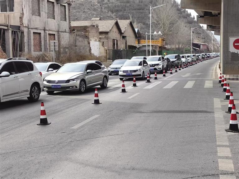 3月22日上午8時,通往大砂坪公墓區(qū)、甘肅臥龍崗人文紀(jì)念園的佛慈大街上車流量明顯增多,雖然車輛行駛速度緩慢,但整體秩序良好。在大砂坪橋公交站處準(zhǔn)備乘坐清明節(jié)掃墓臨時專線公交車前往公墓祭掃的市民排起了長隊(duì)。墓園附近,等待進(jìn)入的車輛也排起了長隊(duì),蘭州市交警支隊(duì)河北大隊(duì)交警引導(dǎo)祭掃車輛安全進(jìn)出墓園停車場,保障路面交通暢通。