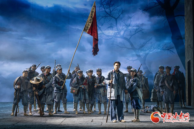 該劇以紅軍長征途經甘肅哈達鋪的重要歷史事件為背景,通過藝術化的舞臺呈現,生動展現了革命先輩的堅定信念與偉大精神。全劇通過人物群像與歷史瞬間的交織,彰顯信仰力量與軍民深情,以時空交織的敘事結構,穿插毛澤東與周恩來回憶對話的閃回場景,通過“序—八場—尾聲”的結構,串聯(lián)紅軍在哈達鋪的休整與決策過程,兼具歷史縱深感與戲劇張力。