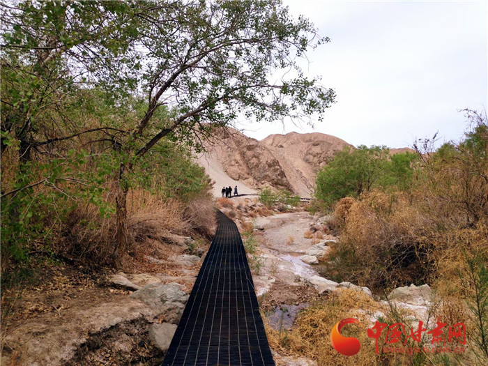 順著懸泉置遺址向峽谷前行,小路的盡頭有一片綠洲,蘆葦叢生,郁郁蔥蔥,在蘆葦于巨石之間山泉流淌源源不斷,由于山泉水從不是從地下滲出,而是從懸空流出,所有才有懸泉之名。也正是懸泉滋養(yǎng),為四周處于戈壁之中的懸泉置提供了穩(wěn)定水源,讓這里成為絲綢之路上的重要驛置。