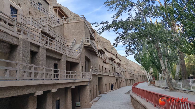 走出莫高窟,暖陽(yáng)下的九層樓像戈壁灘上的一幅“中國(guó)畫”。壁畫不會(huì)說話,卻用顏色與線條告訴世界:何以中國(guó)?在敦煌,在墻上,在人們仰頭凝視壁畫的那一刻,中國(guó)已然數(shù)千年,且從未褪色。