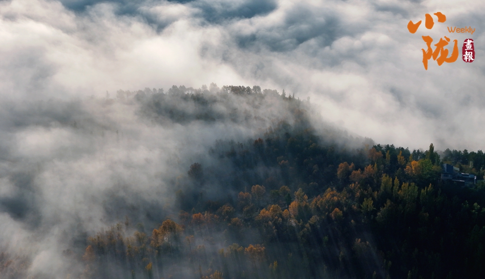 山林深處,秋意更濃。滿山遍野的銀杏葉換上了金黃的盛裝,宛如油畫(huà)般絢麗多彩。輕盈的云霧在山谷間流動(dòng),如同輕紗般籠罩著山巒,陽(yáng)光斜灑其上,宛如一片金色的海洋。