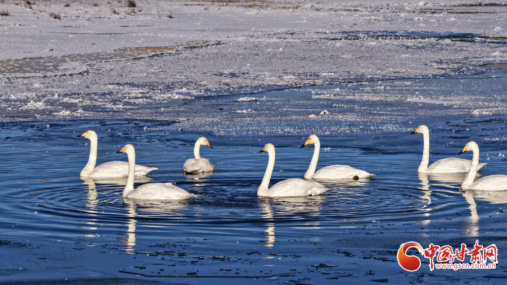 11月18日,初冬的甘肅山丹馬場(chǎng)鸞鳥(niǎo)湖濕地上,赤麻鴨、大天鵝、大白鷺三種珍稀鳥(niǎo)類悠然共處。它們或于冰面踱步,或在湖中游弋,或于淺灘佇立,共同構(gòu)成了濕地生態(tài)持續(xù)向好的生動(dòng)圖景。