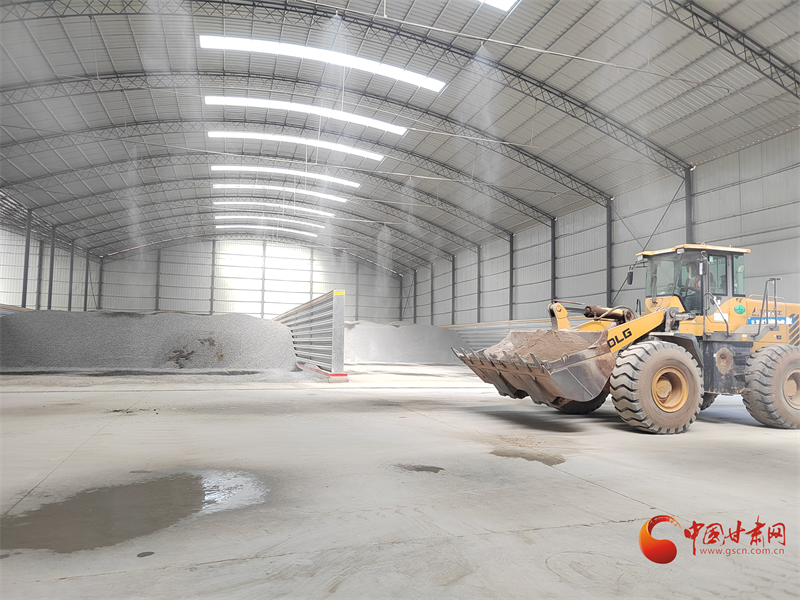 G30忠茅擴(kuò)容改造項(xiàng)目拌合站儲(chǔ)料車間,一輛輛工程車正在來往穿梭儲(chǔ)備物料。