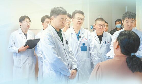 記者趕到住院部13樓普外科一病區(qū)時(shí),查房已經(jīng)開始了:主任張輝走在前面,李昕和七八位年輕醫(yī)生跟在身后,魚貫進(jìn)入一間間病房。“吃飯?jiān)趺礃樱?rdquo;“晚上能睡踏實(shí)嗎?”“能動(dòng)就多動(dòng)動(dòng)。”醫(yī)患間簡(jiǎn)短溫和的對(duì)話,是患者與家屬期待的時(shí)刻。