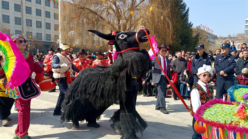 2026年正月十三,和政縣城再度因秧歌沸騰。6支秧歌隊(duì)齊聚展演,旱船搖曳、高蹺翩躚、舞獅騰躍、春牛歡騰,街巷人頭攢動(dòng)、歡聲如潮。這場(chǎng)年度非遺盛會(huì),既是傳統(tǒng)儀式的當(dāng)代復(fù)現(xiàn),也是文化根脈的集體喚醒。從民間自發(fā)組織到政府引導(dǎo)保護(hù),從家族口傳身授到系統(tǒng)化傳承推廣,和政秧歌始終保持原生質(zhì)感,不事雕琢、貼近生活,成為連接歷史與當(dāng)下的文化紐帶。