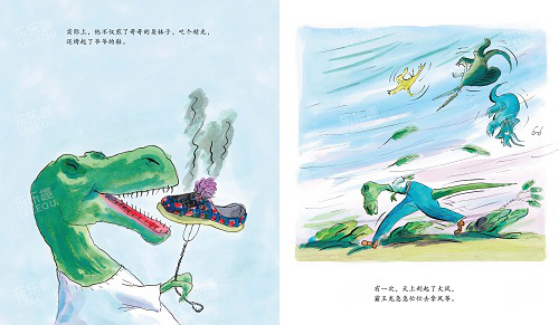 一只可憐的霸王龍弄丟了自己的眼鏡。沒(méi)有眼鏡,他分不清馬桶和洗臉盆;沒(méi)有眼鏡,他分不清咸魚(yú)和臭襪子……直到一個(gè)大風(fēng)天,霸王龍拉著一個(gè)“風(fēng)箏”吃力地爬上了一座“小山”,突然,“小山”站起來(lái)了,“風(fēng)箏”拉著他飛走了。霸王龍會(huì)遇到危險(xiǎn)嗎?他能平安地回來(lái)嗎?