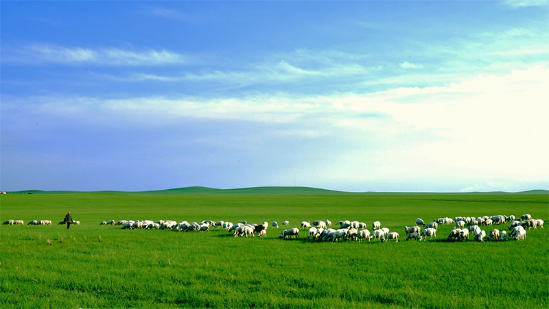 繞過大山,大地如一張折疊著的紙被突然展平。眼前變得開闊了。一只鷹從公路的一邊滑翔到另一邊,當(dāng)它從車頂上飛過時(shí),整個(gè)貢格爾草原都慢了下來。風(fēng)舒緩地吹皺了貢格爾河的河水,牛羊在路兩旁悠閑地散步。為了能及時(shí)躲避進(jìn)入公路的牛羊,車子明顯放慢了速度。我的心恨不得插上翅膀,和剛剛飛過車頂?shù)男埴椧粯樱煤每纯催@遼闊的草原。