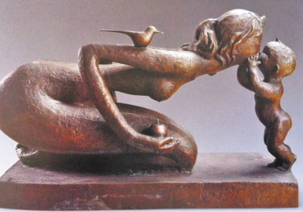最后的廳,是一批中外馳名的雕塑代表作——從嬌小稚拙掌中把玩的小品到體量龐大高聳入云的巨構,無論隨形寫意、裝飾寫實,美林都在策劃、構成、調整、定型的繁復過程中,顯示出扎實的藝術功力與非凡的浪漫色彩。其中,龍、虎、馬、牛等動物系列,不僅延續(xù)了繪畫中獨有的造型風格,而且更凝重渾厚,更富裝飾情趣。與眾不同人見人愛的母子系列中,不論是精心呵護襁褓嬰兒的母親,匍匐草地引領學步的母親,牽手寶寶步入校園的母親,造型、肢體的夸張之奇變形之巧,感官、神態(tài)的風韻依依顧盼有情,讓人駐足良久再三流連……