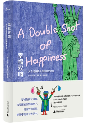 書(shū)名《幸福雙響》(A Double Shot of Happiness),來(lái)自蒂姆最?lèi)?ài)的創(chuàng)作之一。朱迪用優(yōu)美且感人肺腑的筆觸,訴說(shuō)著蒂姆漫長(zhǎng)的人生旅程——從被診斷為重度自閉癥患者到嶄露頭角成為備受推崇的藝術(shù)家,以及一個(gè)能夠愛(ài)人與被愛(ài)的年輕人。