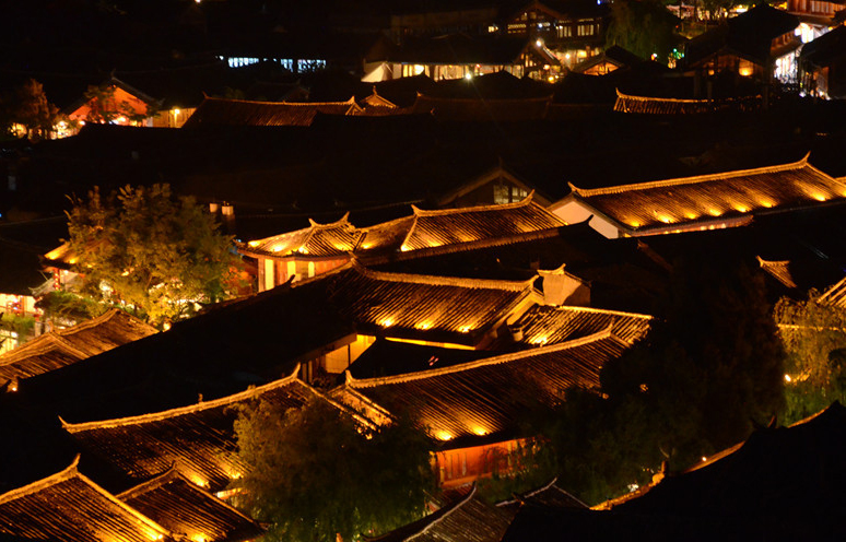 黃昏時,主人再去打水澆花時,我又回到了穿城而過的水流之中。這時,古城五彩的燈光把渠水輝映得五彩斑斕。游客聚集的茶樓酒吧中,傳來人們的歡笑與歌唱。這些人在自己所來的遠(yuǎn)處地方,即便是寂靜時分,內(nèi)心也很喧嘩。在這里,盡情歡歌處,夜涼如水,他們的心像一滴水一樣晶瑩。