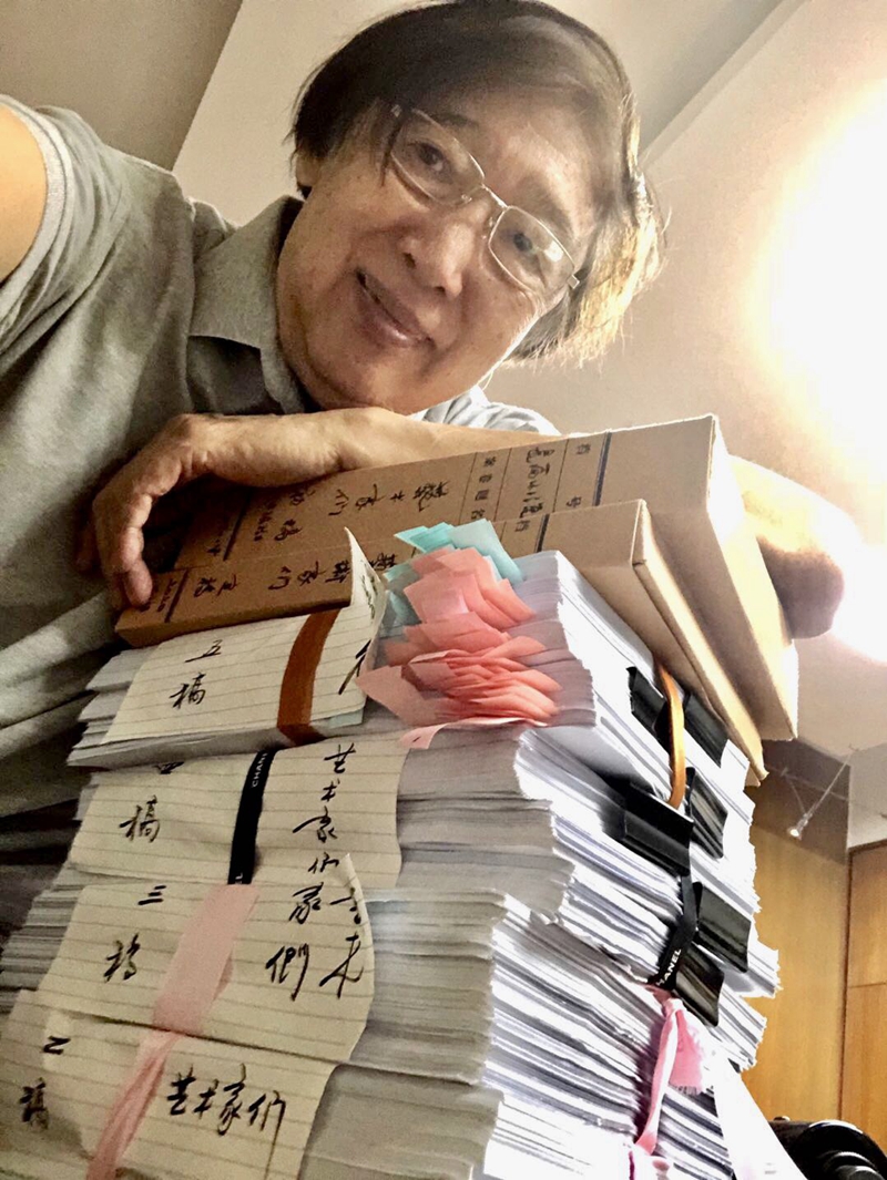 2020年6月19日晚,馮驥才先生修改完《藝術(shù)家們》第七稿后自拍留念。