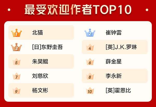 這些搜索熱詞同樣帶動了相關圖書的銷售。兒童書作家北貓和崔鐘雷成為京東圖書2020年最受歡迎作者的第一名和第二名。在“哈利·波特”和“三體”成為熱搜詞的同時,作家J.K.羅琳和劉慈欣也入圍京東圖書2020年最受歡迎作者TOP10。