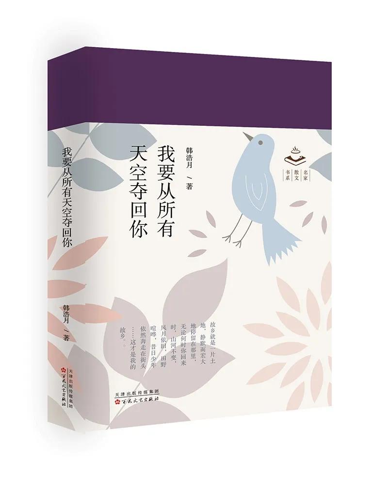 近日,知名文化評(píng)論人韓浩月的散文精選集《我要從所有天空奪回你》出版。這是一本關(guān)于故鄉(xiāng)主題的作品集,全書分為《望故鄉(xiāng)》《一個(gè)被撕成兩半的人》《遠(yuǎn)與近》《浪潮來臨》四部分,書名出自茨維塔耶娃一首波瀾壯闊的情詩。韓浩月表示,書名里的“你”是虛指,是一種正在擴(kuò)散、變淡、消失的事物,而“奪回”表明了一種姿態(tài)、一個(gè)愿望,釋放出強(qiáng)烈的情感信號(hào)。