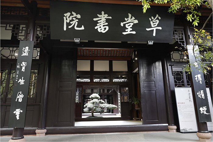 恢復(fù)重建后的草堂書(shū)院占地3000余平方米,主要由兩重三進(jìn)四合院的中國(guó)傳統(tǒng)古建筑院落和一幢單體古建三大主體建筑組成。建筑古樸典雅、氣勢(shì)宏偉,有展示書(shū)院文化的序廳、開(kāi)展書(shū)院教育活動(dòng)的國(guó)學(xué)小講堂、緬懷文人先賢的名人書(shū)房、提供書(shū)院藏書(shū)閱讀的圖書(shū)館、開(kāi)展書(shū)院學(xué)術(shù)活動(dòng)的研修室、開(kāi)展百人以上的講座論壇的大型學(xué)術(shù)報(bào)告廳以及面向未成年人開(kāi)展社教活動(dòng)的仰止堂。