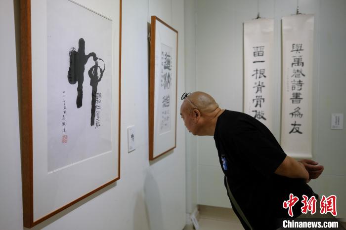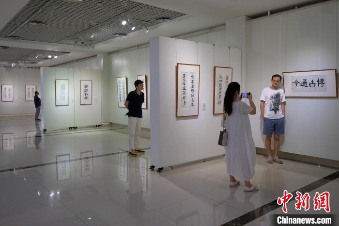 圖為觀眾在書法展上拍照留念?!『闻罾?nbsp;攝