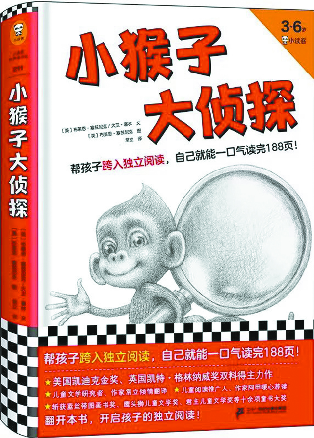 《小猴子大偵探》是本“欺騙性”很強(qiáng)的書,第一次讀到時(shí),我真的被騙到了!聽說是《造夢的雨果》作者的新作,我完全沒理會(huì)這本書的介紹,就迫不及待地翻開來。好家伙,共有5章,差不多200頁,我心想,總得一兩個(gè)小時(shí)才能讀完吧。正當(dāng)我擺開架勢,準(zhǔn)備好好享受童書鬼才塞茲尼克和塞林的新作時(shí),翻著翻著,大概六七分鐘吧,嗯——居然就翻到了最后一頁!天哪,我當(dāng)時(shí)想,這是怎樣的一本書?。〔粚?,這真的是一本書嗎?