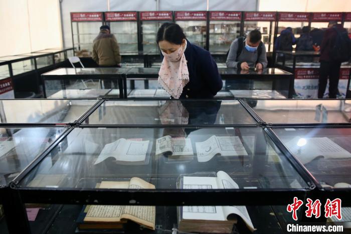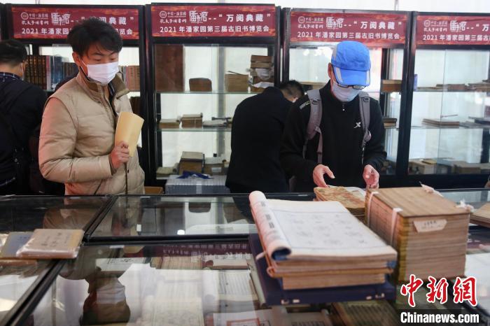 20日,“萬(wàn)閱典藏”第三屆古舊書博覽會(huì)在北京潘家園舊貨市場(chǎng)開幕,圖為博覽會(huì)現(xiàn)場(chǎng)。 中新社 易海菲 攝