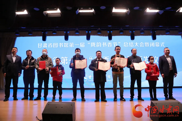 中國甘肅網(wǎng)12月28日訊(本網(wǎng)記者 張?zhí)m琴 通訊員 吳鵬)12月27日,歷時8個月的甘肅省圖書館第一屆隴韻書香節(jié)圓滿落幕。閉幕儀式上播放了第一屆“隴韻書香節(jié)”活動總結(jié)短片和書香家庭宣傳短片,公布了“隴韻書香節(jié)”形象標識(LOGO)方案,并為“甘肅省第一屆書香家庭”獲得者、“紅色經(jīng)典閱讀 點亮愛黨紅心”活動獲獎?wù)哳C獎。