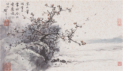 馮先生還和夫人在每年結婚紀念日時一起作畫,“我們去年過了綠寶石婚,結婚55周年。每到結婚紀念日,都是我們倆人畫一幅,畫一對小鳥。早在六七十年代最艱苦的時候就開始了,因為我夫人也是畫畫的,我們那時一起畫了一對小鳥在風雪里,那幅畫我現在還有。后來我們一直畫鳥,風景在不斷地變化,這和我們對生活的感受有很大的關系。”