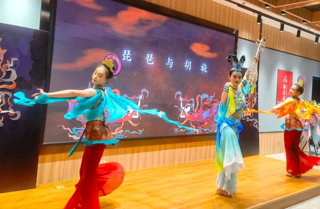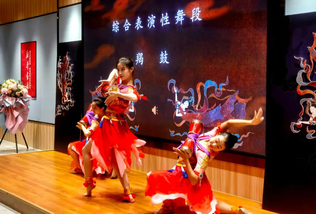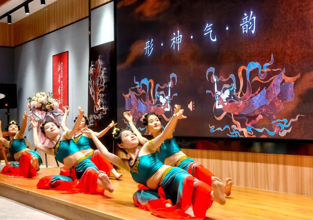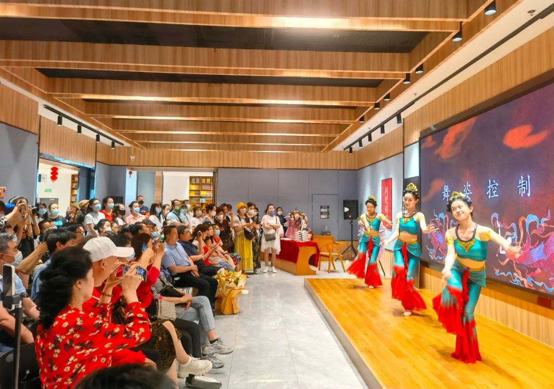 見面會現(xiàn)場,作者介紹了本書創(chuàng)作歷程,并通過“形、神、氣、韻”“抻、曲”“舞姿控制”“四臂觀音”“四人飛天”“胡旋與琵琶”等組合精彩紛呈的表演,使讀者更加直觀地了解本書的主要內(nèi)容和敦煌舞蹈的文化內(nèi)涵,感受敦煌舞蹈傳遞出的藝術價值、文化素養(yǎng)和無窮的魅力。