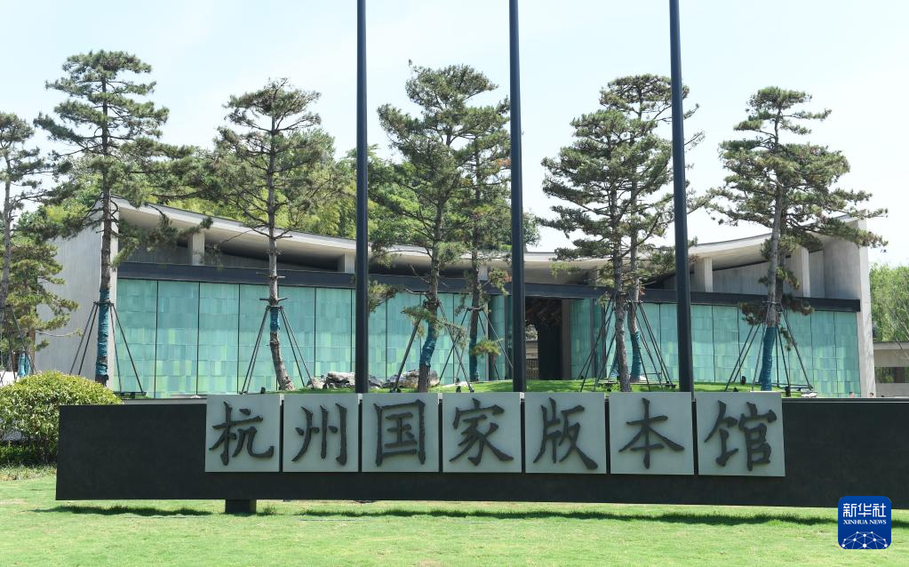 杭州國家版本館屋頂?shù)哪緲?gòu)和青瓷門扇相映成趣(7月23日攝)。