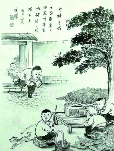 甫一翻閱,我就被深深吸引住了,欲罷不能,用半天的時間,集中讀完了其中的一冊。畫家描繪的正是我的冀中平原故鄉(xiāng)的風光民俗,每一幅畫面,都仿佛是自遙遠的時光彼端發(fā)出的一封請柬,邀我回返五十年前的上個世紀六七十年代,回到在故鄉(xiāng)農(nóng)村度過的童年,重新體驗那種快樂無比的心境。