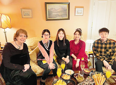 到愛爾蘭人家中做客、共度圣誕節(jié),對(duì)張靜瑄來說是新鮮的體驗(yàn)。“那天晚上,我嘗到了許多圣誕節(jié)的特色美食,比如烤火雞、布丁等,我們幾名中國(guó)學(xué)生帶去了餃子,和老爺爺、老奶奶一同分享。席間,我們聊到春節(jié)和圣誕節(jié)的慶祝方式、對(duì)東西方家庭的意義等,這讓我切身體會(huì)到了不同國(guó)家的文化差異,也拓展了我的認(rèn)知,是我難忘的珍貴回憶。”周姝蕓
