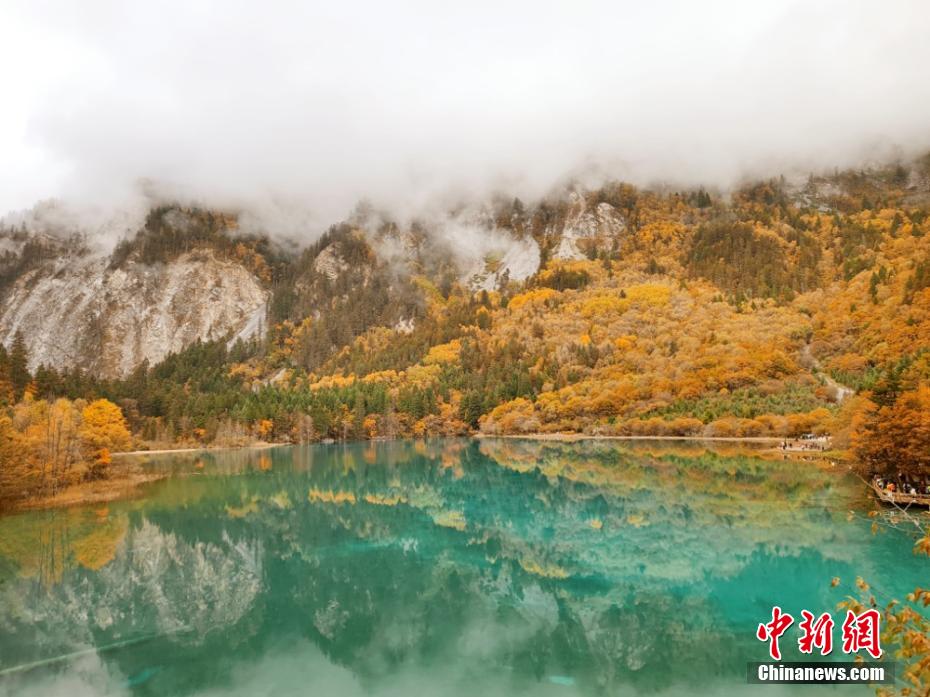 資料圖:深秋時(shí)節(jié)的九寨溝景區(qū)滿山的彩林與碧藍(lán)的海子交相輝映,宛如一個(gè)色彩繽紛的童話世界。曹惠君 攝