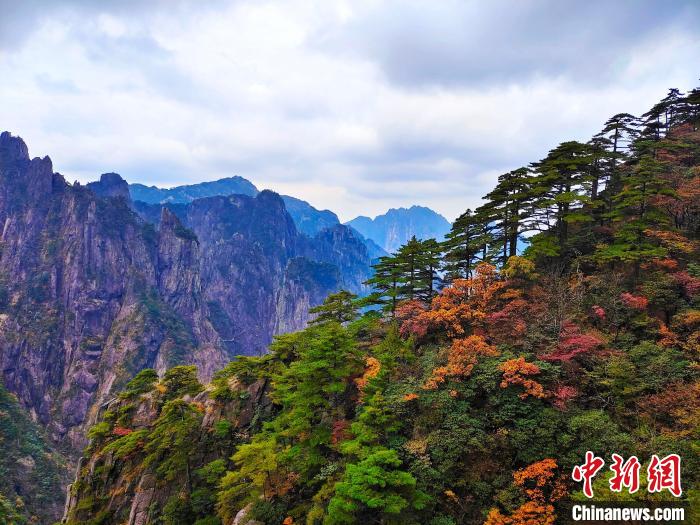 資料圖:黃山風(fēng)景區(qū)樹(shù)木色彩分層,紅黃相間。陳偉 攝