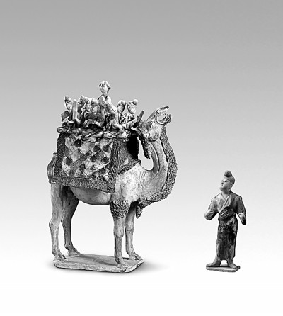 三彩載樂駱駝及牽駝俑(唐代),1959年西安中堡村唐墓出土。圖片選自《國(guó)寶中的黃河文明》