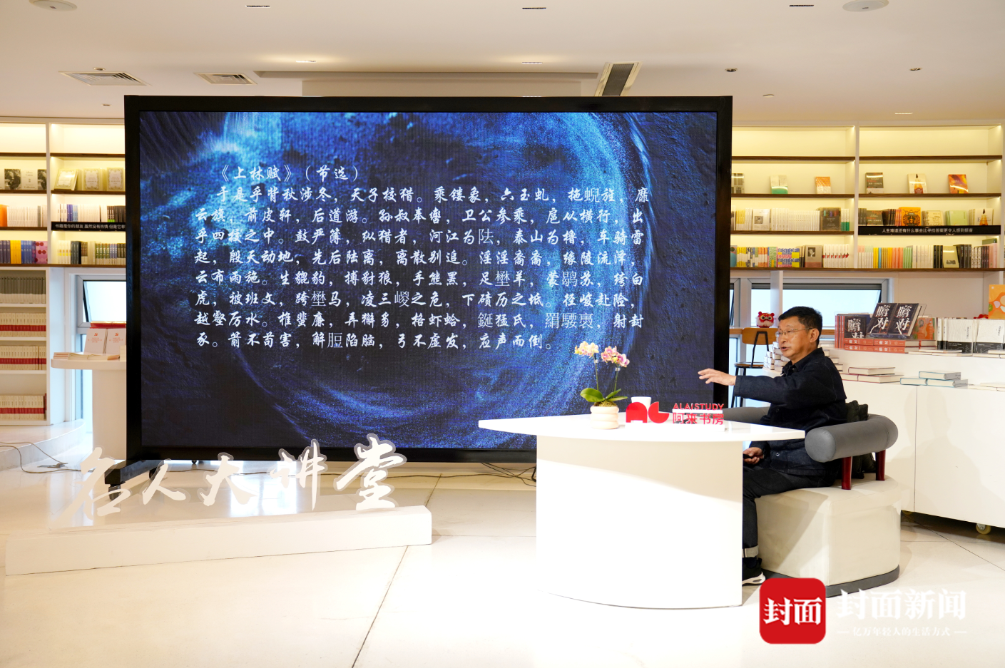 11月18日下午,中國(guó)作協(xié)副主席、四川省作協(xié)主席、著名作家阿來,在阿來書房登上“名人大講堂”的講臺(tái),以“酒肆人間世,琴臺(tái)日暮云——理解司馬相如的一生”為題目,分享他多年閱讀、思考司馬相如其人其文的智慧收獲。