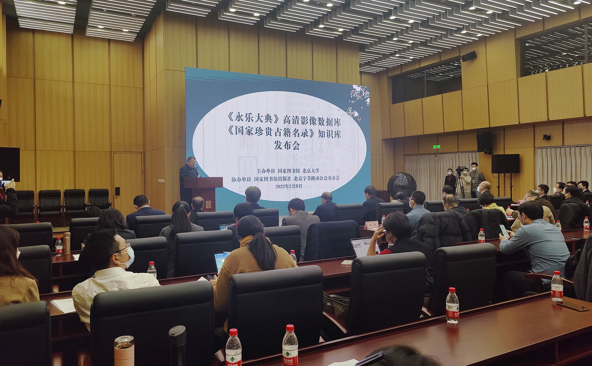 新華網(wǎng)北京2月9日電(李然)2月8日,“《永樂(lè)大典》高清影像數(shù)據(jù)庫(kù)”及“《國(guó)家珍貴古籍名錄》知識(shí)庫(kù)”在國(guó)家圖書(shū)館發(fā)布。發(fā)布會(huì)由國(guó)家圖書(shū)館(國(guó)家古籍保護(hù)中心)聯(lián)合北京大學(xué)主辦,國(guó)家圖書(shū)館出版社和北京字節(jié)跳動(dòng)公益基金會(huì)協(xié)辦。文化和旅游部黨組成員、副部長(zhǎng)饒權(quán),北京大學(xué)黨委書(shū)記郝平,中宣部出版局局長(zhǎng)馮士新,國(guó)家圖書(shū)館館長(zhǎng)、國(guó)家古籍保護(hù)中心主任熊遠(yuǎn)明,北京大學(xué)副校長(zhǎng)王博,北京字節(jié)跳動(dòng)公益基金會(huì)副理事長(zhǎng)兼秘書(shū)長(zhǎng)李濤出席活動(dòng)。專家學(xué)者代表、數(shù)據(jù)庫(kù)建設(shè)項(xiàng)目組成員代表、部分新聞媒體代表等參加會(huì)議。會(huì)議由國(guó)家圖書(shū)館常務(wù)副館長(zhǎng)、國(guó)家古籍保護(hù)中心副主任張志清主持。