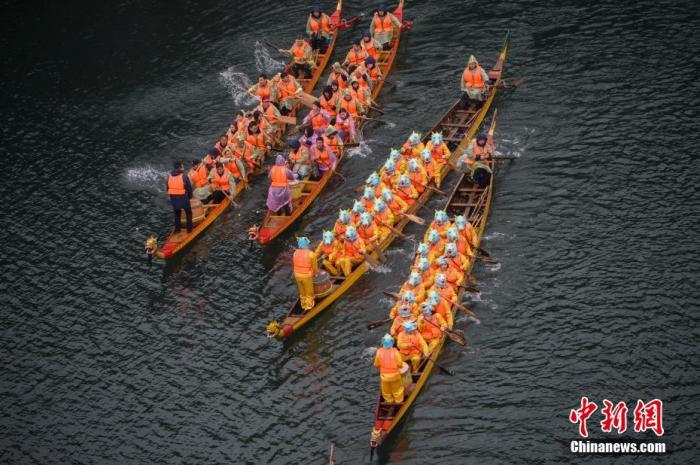資料圖:正值農(nóng)歷二月初二,湖南長沙石燕湖舉行“龍?zhí)ь^”龍舟賽。楊華峰 攝