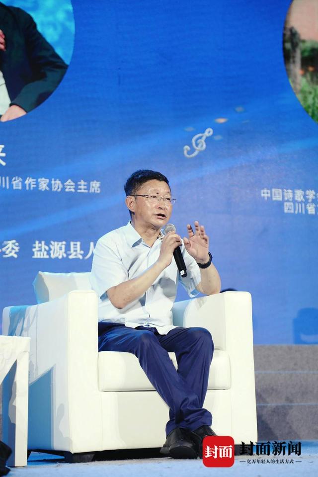 現(xiàn)場(chǎng),阿來(lái)、陳智林與龔學(xué)敏就“詩(shī)歌創(chuàng)作如何與音樂(lè)結(jié)合”“詩(shī)歌如何賦能鹽源縣文旅發(fā)展”“如何打造四川特色的文化事業(yè)和文化產(chǎn)業(yè)”等議題展開(kāi)了對(duì)話,深入探討鹽源的詩(shī)與遠(yuǎn)方。