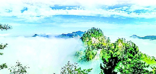 然而,天水石門山的饋贈(zèng)還不止這些。由于石門山地理位置特殊,宜人的氣候經(jīng)常會(huì)造就氣勢(shì)磅礴的浩瀚云海。云海平靜時(shí),云霧便在半山腰停住腳步。站在山巔遠(yuǎn)眺,只見腳底下半山腰白霧團(tuán)團(tuán),感覺自己在云山之巔,飄飄欲仙。“不知天上宮闕,今夕是何年?”此情此景,比畫更有靈氣,比詩更具意境。置身其中,感覺空氣都被浸潤得芳香四溢,令人心曠神怡。