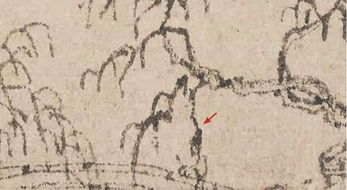 第三,橋樁部分被徹底燒毀。這是因?yàn)楫?dāng)年吳洪?;鹧钞?huà)卷時(shí),畫(huà)作最下面一部分可能燒毀了,這個(gè)橋樁在重新裝裱時(shí)估計(jì)不得不被裁剪掉了。