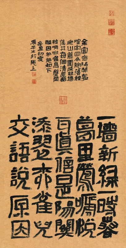 張平生是“詩人中的書法家,是書法家中的詩人”,是真正實(shí)現(xiàn)“我筆寫我文”的為數(shù)不多的“藝文兼?zhèn)?rdquo;型書法家。他的的書法,充分發(fā)揮“二爨”優(yōu)勢,上溯漢碑簡牘,把三者的風(fēng)格重新優(yōu)化組合,生發(fā)出新的系列,活化了“二爨”在當(dāng)代的創(chuàng)作形態(tài),獲得廣泛贊譽(yù)。