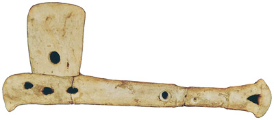 一件有柄穿孔陶斧引發(fā)關(guān)注。它由泥質(zhì)紅陶制成,分柄和穿孔斧兩部分,柄為橢圓形棒狀,前粗后細(xì),前端翹起,有淺槽可嵌入穿孔斧。槽后有三孔,可穿繩縛住穿孔斧,使其固定在槽內(nèi)。柄后端作半月形,并有三角形穿孔。這件有柄陶斧雖非實(shí)用工具,但為當(dāng)時(shí)穿孔石斧的裝柄方法提供了實(shí)物證據(jù),讓我們能想象它的功能。陶器基本是素色,器類(lèi)齊備、器形多樣,鼎、鬶、缽、杯、盆、瓶、壺、豆等應(yīng)有盡有。有的夾砂陶中摻雜有蚌殼粉末,體現(xiàn)水鄉(xiāng)地域特點(diǎn)。青墩陶器造型穩(wěn)重、優(yōu)美,線條簡(jiǎn)練而充滿(mǎn)動(dòng)感,顯示出史前青墩人對(duì)于生活的感受。