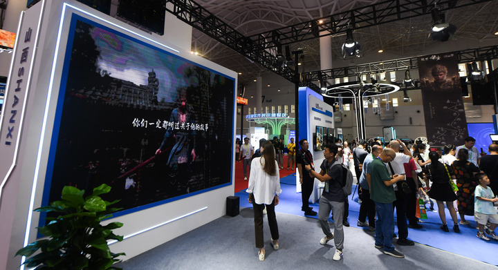 數(shù)博會上,國產游戲《黑神話:悟空》備受矚目。山西展團以游戲中“悟空”路線為主題,重點展示了一批介紹山西古建筑、歷史文化遺產的出版物,“悟空拍照區(qū)”成了“熱門打卡地”。