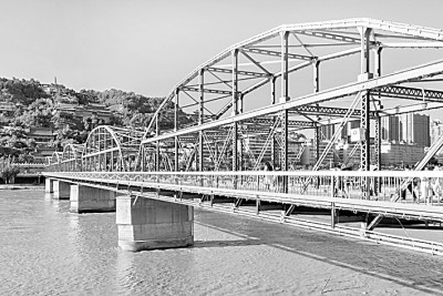 以百年時(shí)間看黃河,《黃河中國(guó)》彰顯黃河古文明之上崛起的現(xiàn)代文明。在書(shū)中我特意寫(xiě)了三座百年黃河鐵橋,它們分別是蘭州黃河鐵橋、鄭州平漢鐵路黃河橋和濟(jì)南濼口黃河鐵路橋。一百年放置在歷史長(zhǎng)河里不算長(zhǎng),卻是一個(gè)較為合適的觀照近現(xiàn)代中國(guó)發(fā)展的時(shí)間點(diǎn)。從擺渡、繩渡到石橋、木橋、浮橋、鐵路橋、公路橋,橋梁建筑史的發(fā)展足以證明人類社會(huì)的進(jìn)步。黃河上最初修建鐵橋的歷史在晚清末年,正是中華民族處于內(nèi)憂外患之際,光緒二十六年(1900)清政府決定修建平漢黃河鐵路橋,這是黃河上的第一座鋼鐵建筑,然而在1938年抗戰(zhàn)烽火中,為阻擋日軍進(jìn)攻,被炸毀了,現(xiàn)在只剩下5孔橋墩。以5孔橋墩存在的黃河第一座鐵橋,象征著黃河上現(xiàn)代工業(yè)文明的興起與民族深深的精神創(chuàng)傷。如今80多年過(guò)去了,鄭州地段已經(jīng)修建了十余座黃河橋,每一座都很現(xiàn)代很漂亮。自新中國(guó)成立以來(lái),黃河安瀾75年,從戰(zhàn)火紛飛到國(guó)泰民安,黃河是國(guó)家昌盛、民眾幸福的最好見(jiàn)證者。