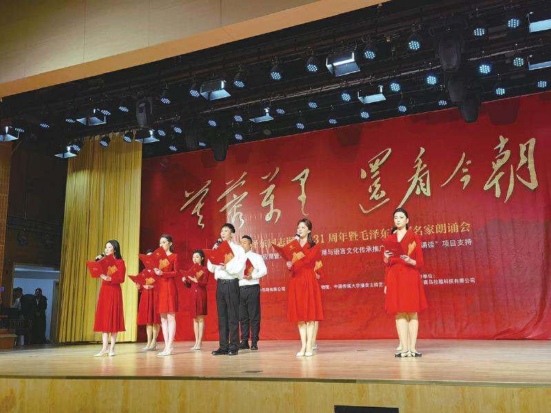 朗誦會(huì)上,中國(guó)傳媒大學(xué)學(xué)生誦讀毛澤東同志詞作《沁園春·長(zhǎng)沙》。 本報(bào)記者 章紅雨 攝