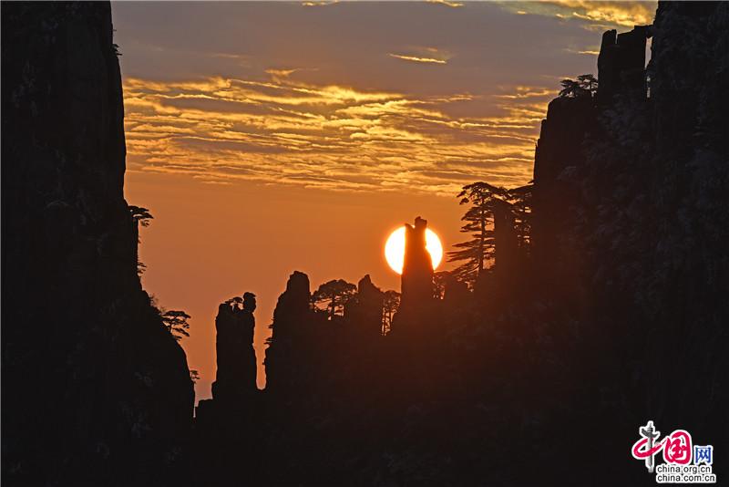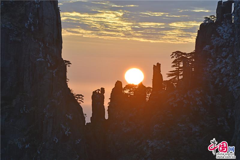 【點睛】新年伊始,黃山風景區(qū)迎接今年的第一縷陽光,在一片歡呼聲中太陽跳出了地平線來到了黃山之巔。