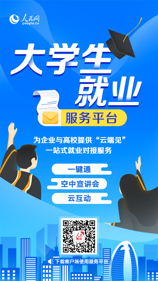 掃描二維碼下載人民智云客戶端,打開“校招”頻道,使用大學生就業(yè)服務平臺