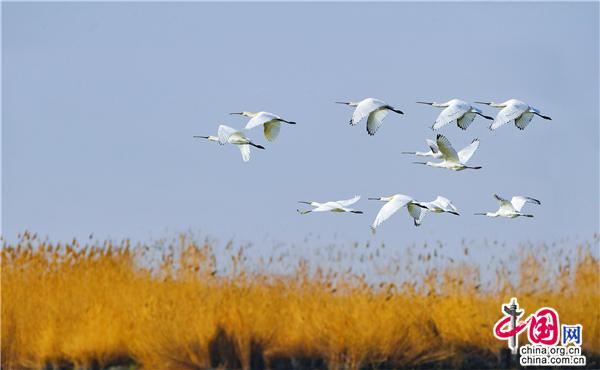 春天的沙湖,草長鶯飛,萬物復蘇,百鳥翔集,遠處湖面上波光粼粼,在和風的愛撫下,漾起層層漣漪。得益于優(yōu)美的自然環(huán)境以及良好的濕地生態(tài),鳥兒們早已遷徙至此,成群的天鵝、白琵鷺、蒼鷺、潛鴨等眾多候鳥早早的抵達沙湖,或是流連嬉戲,亦或是歇腳覓食,一幅和諧美好的春日美景圖栩栩展現(xiàn)在眼前。