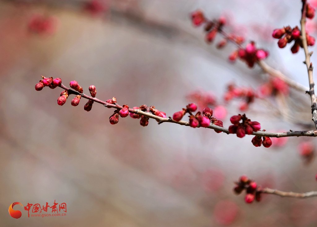 3月23日,蘭州五泉山公園一株榆葉梅含苞待放。