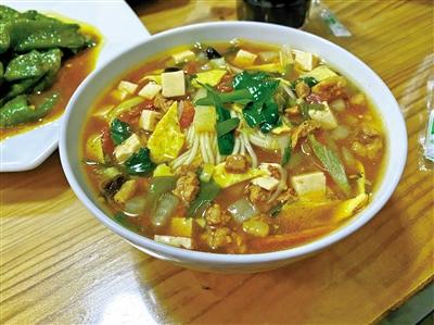 澆頭很“田園”,勾芡不厚不薄,恰到好處,故而色澤鮮亮;用料實(shí)在,五花肉丁、豆腐丁、洋芋丁、胡蘿卜丁、黃花菜、黑木耳品種豐富,一絲不茍;面條半個筷頭粗細(xì),微黃半透,勻稱筋道,久泡不爛;佐以熗拌水蘿卜、蒜泥茄子,真的是香濃滑爽,吃完令人毛孔大張,微微汗溢。