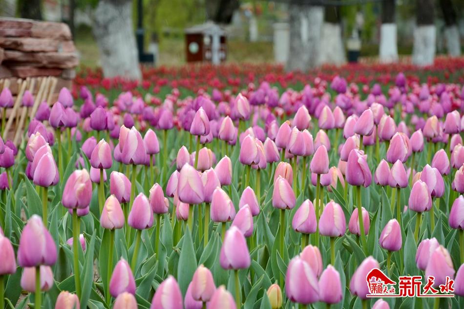 在經(jīng)歷了一個(gè)漫長(zhǎng)的嚴(yán)冬之后,馬跑泉公園的25萬(wàn)余株郁金香和5萬(wàn)余盆各類時(shí)令鮮花在麥積大地上郁郁蔥蔥的綻放著。
