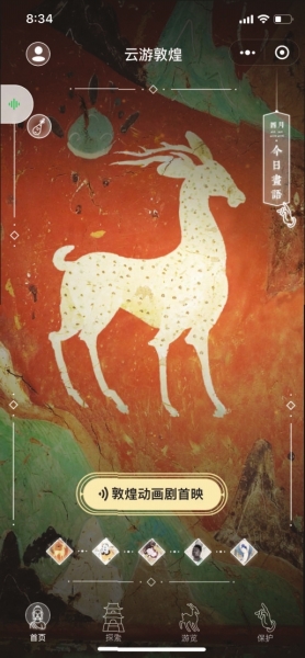 4月13日,“云游敦煌”升級為有聲版,首映“敦煌動(dòng)畫劇”。該劇集根據(jù)莫高窟經(jīng)典壁畫改編而成,最大程度保留壁畫藝術(shù)特點(diǎn)、影像質(zhì)感和光彩色澤。用戶在“追劇”時(shí)還能親身參與選擇角色配音,為行業(yè)首次帶來“社交+互動(dòng)”體驗(yàn)。“云游敦煌”還低調(diào)推出“敦煌藝術(shù)之最”有聲版系列壁畫,如最早的3D圖案畫、最早的AI演奏會(huì)等,讓用戶觀摩壁畫之時(shí),還能傾聽官方語音解說,增強(qiáng)身臨其境的體驗(yàn)。