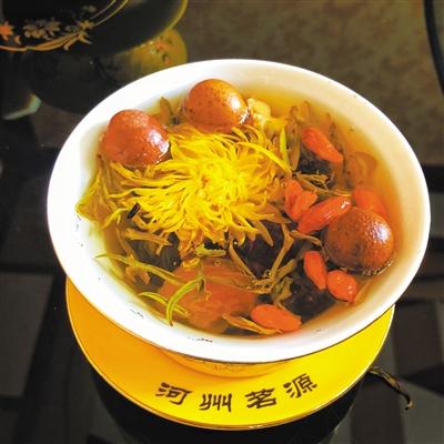 茶盤(pán)里除茶葉之外,還有冰糖、枸杞、桂圓、紅棗、杏干、葡萄干、玫瑰花、菊花等。你可以根據(jù)自己的喜好,選幾樣放在蓋碗里,伙計(jì)用滾滾的“牡丹水”(臨夏對(duì)開(kāi)水的戲稱(chēng))挨個(gè)澆在這些蓋碗里,頓時(shí),茶葉、枸杞、紅棗、菊花的香味伴著冰糖的“嗞嗞”聲升騰開(kāi)來(lái)。