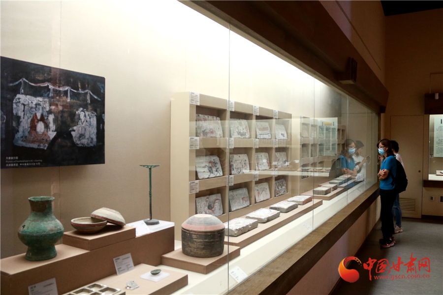 2020年5月18日,游客在甘肅省敦煌市博物館參觀文物展。